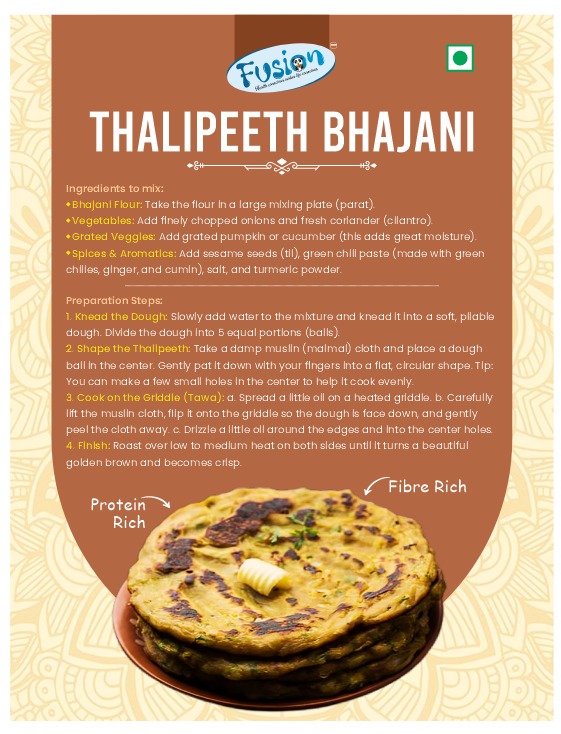 Bring the authentic taste of Maharashtra to your table with our Thalipeeth Bhajani. This multigrain flour is a masterful blend of roasted Jowar, Bajra, Ragi, and pulses, seasoned with traditional spices. Traditionally used to make savory flatbreads (Thalipeeth), this premix is a complete protein source that is both aromatic and highly digestible. Simply add fresh coriander and onions to create a rustic, wholesome meal that celebrates the heritage of Indian millets.